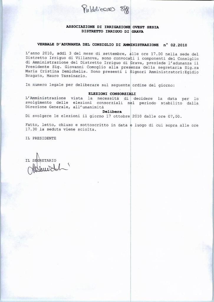 Ass. Irrigua OVEST SESIA : VERBALE CONSIGLIO 02.2010