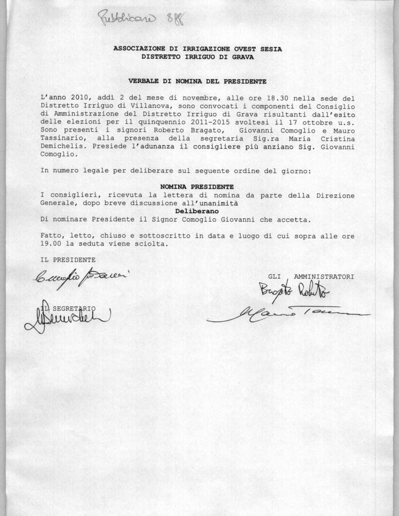 Associazione Irrigua Ovest Sesia : pubblicazione verbale