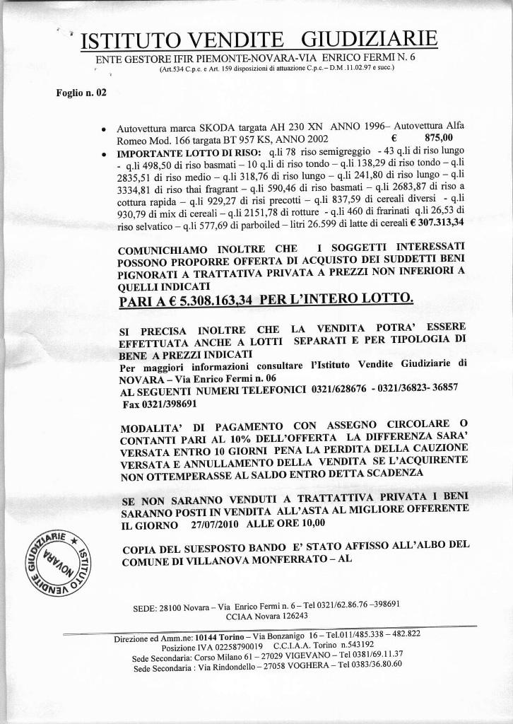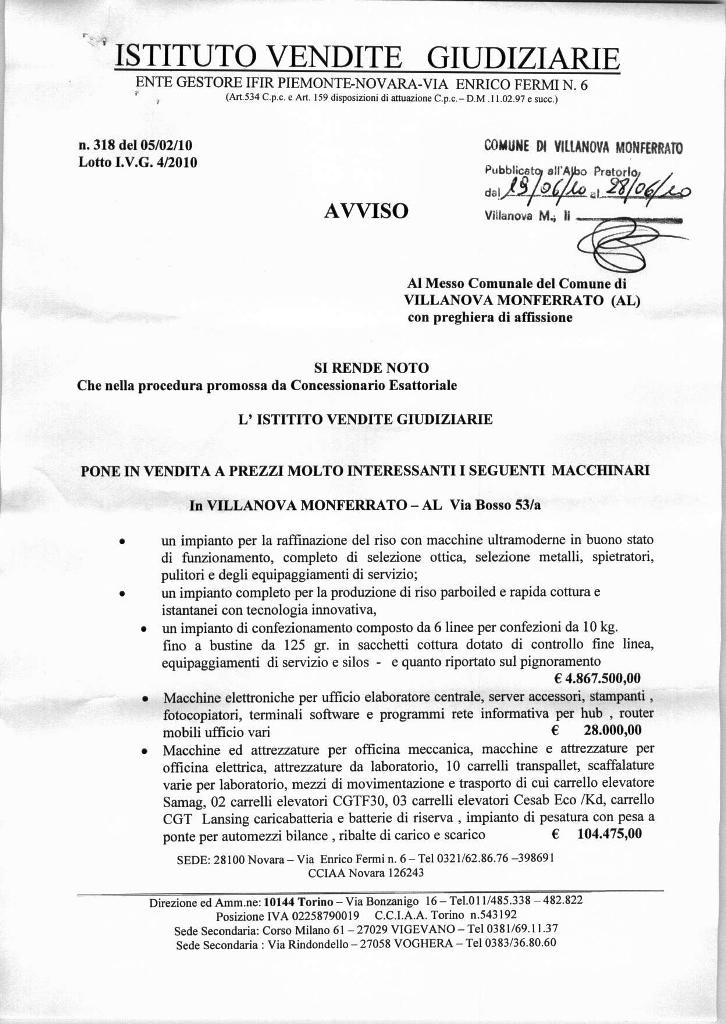 | Description | Avviso vendita beni mobili . Attrezzatura industriale Riseria |