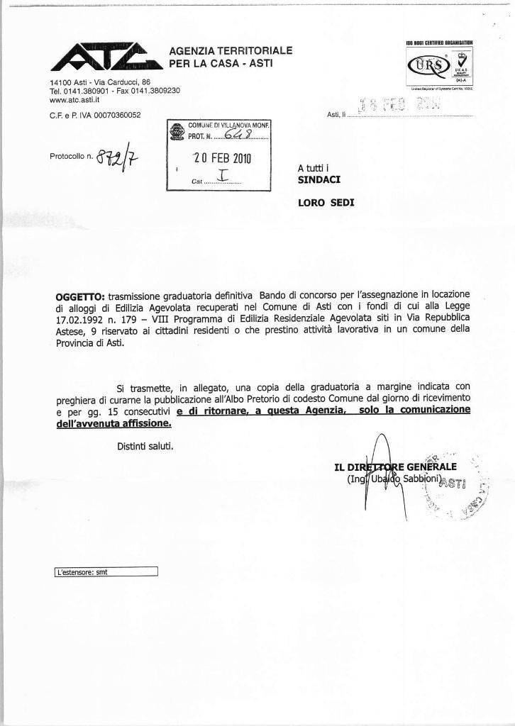 | Description | Graduatoria definitiva bando per l'assegnazione di alloggi nel Comune di Asti. |