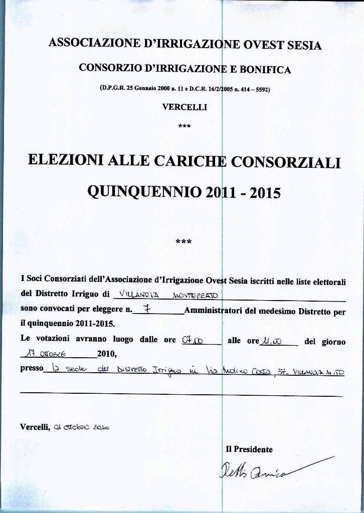 Ass. Irrigua OVEST SESIA : ELEZIONI 2011-2015