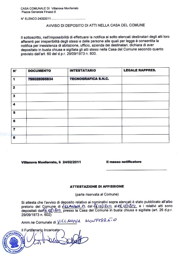| Descrizione | EQUITALIA NOMOS SPA : Avviso di deposito atti nella casa del Comune. Elenco n° 24022011 |