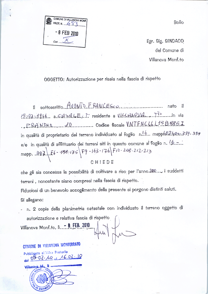 Richiesta di coltivazione risaia in fascia di rispetto.