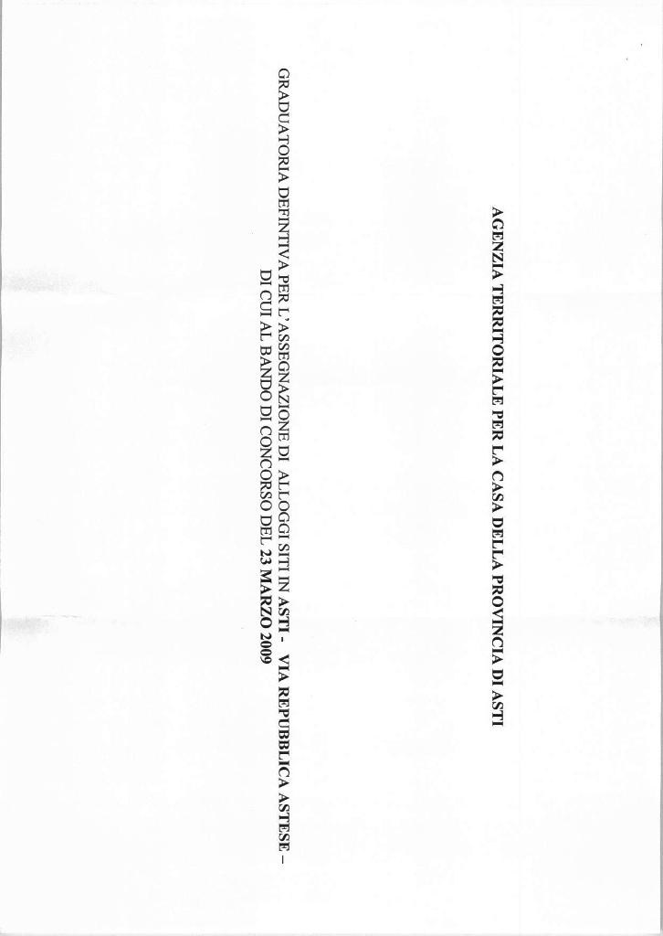 | Description | Graduatoria definitiva bando per l'assegnazione di alloggi nel Comune di Asti. |